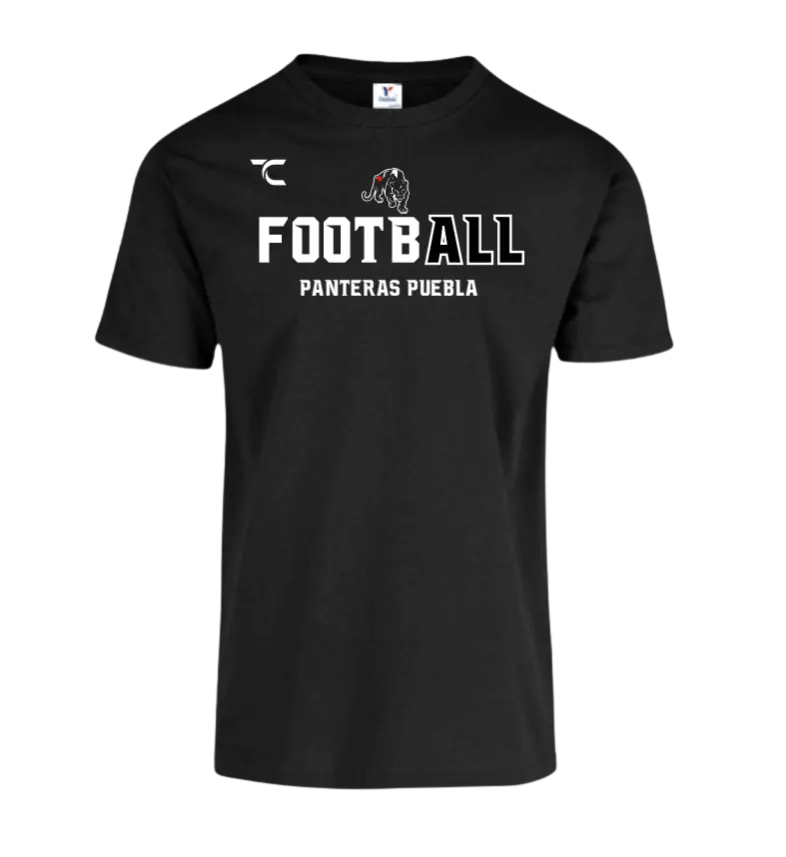 Camiseta clásica en color negro con diseño 'Football Panteras Puebla', ideal para fans.